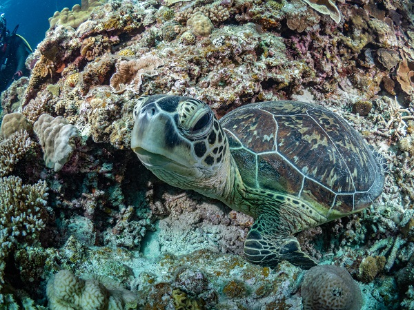 普段から潜るダイバーが少ないので、浅瀬はキレイなサンゴがたくさん群生し、魚影も濃く透明度も抜群です!!