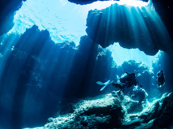 久場島・屋嘉比島はケラマでは少ないダイナミックなドロップオフ、洞窟等の地形ポイントが多いです。初級ダイバーからOK!