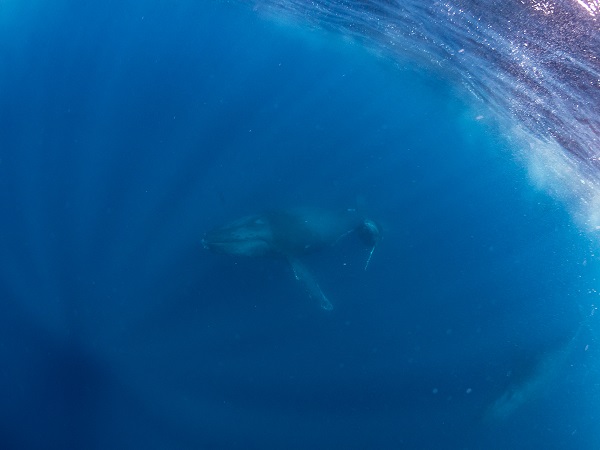 クジラの観察は水面からのみとし、素潜りは禁止とします。クジラによっては、人が近くを泳ぐことを嫌い、逃げてしまう場合があります。そのため、原則として緊急時やガイドの指示がある場合を除き、クジラの近くでフィンキックなどをして泳ぐことも禁止します。クジラは一度でもそのような行動を取る人間を嫌がってしまうと、その後スイムで近づくことができなくなる場合が多いため、必ずこれらの事項をお守りください。