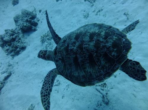アオウミガメを上から撮ってみました~!大の字になって気持ちよさそうに泳いでおります。最高の癒し系のウミガメたちです♪本日も、ありがとうございました!アドバンスコースは、ナイトダイビングも行いました♪お疲れ様です!そして、ダイバーになった講習生さん次回また沖縄でお待ちいたしております♪