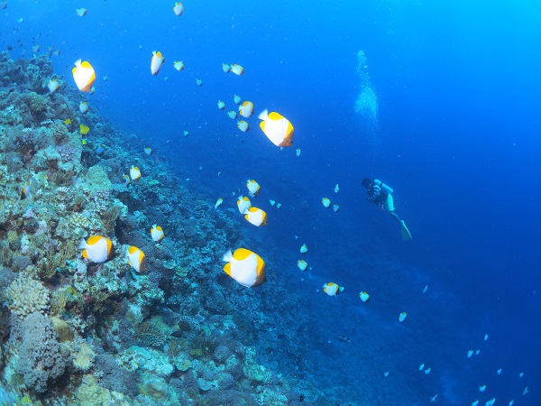ダイナミックなドロップオフ、カスミチョウチョウウオの乱舞、ケラマでは見れないアカネハナゴイが超キレイでした!!!