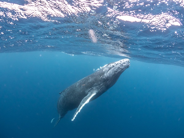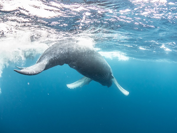 クジラの観察は水面からのみとし、素潜りは禁止とします。クジラによっては、人が近くを泳ぐことを嫌い、逃げてしまう場合があります。そのため、原則として緊急時やガイドの指示がある場合を除き、クジラの近くでフィンキックなどをして泳ぐことも禁止します。クジラは一度でもそのような行動を取る人間を嫌がってしまうと、その後スイムで近づくことができなくなる場合が多いため、必ずこれらの事項をお守りください。