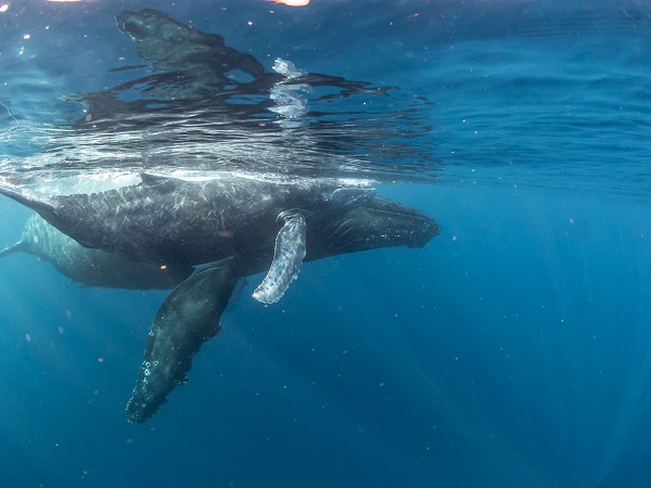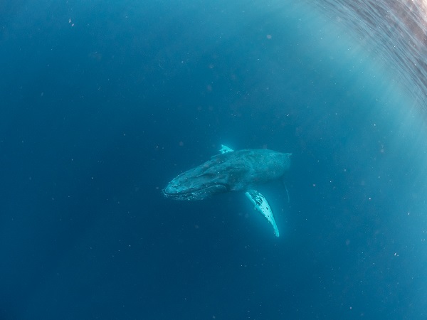 クジラの観察は水面からのみとし、素潜りは禁止とします。クジラによっては、人が近くを泳ぐことを嫌い、逃げてしまう場合があります。そのため、原則として緊急時やガイドの指示がある場合を除き、クジラの近くでフィンキックなどをして泳ぐことも禁止します。クジラは一度でもそのような行動を取る人間を嫌がってしまうと、その後スイムで近づくことができなくなる場合が多いため、必ずこれらの事項をお守りください。