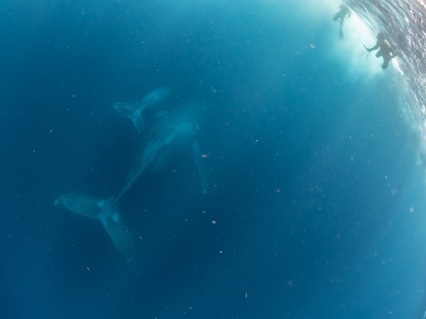 たとえクジラが近くを泳いでいても、状況によってはエントリーを行わない場合があります。