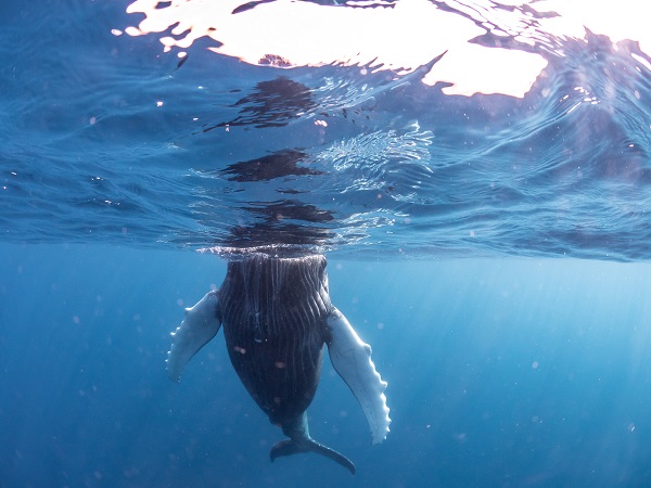 クジラの観察は水面からのみとし、素潜りは禁止とします。クジラによっては、人が近くを泳ぐことを嫌い、逃げてしまう場合があります。そのため、原則として緊急時やガイドの指示がある場合を除き、クジラの近くでフィンキックなどをして泳ぐことも禁止します。クジラは一度でもそのような行動を取る人間を嫌がってしまうと、その後スイムで近づくことができなくなる場合が多いため、必ずこれらの事項をお守りください。