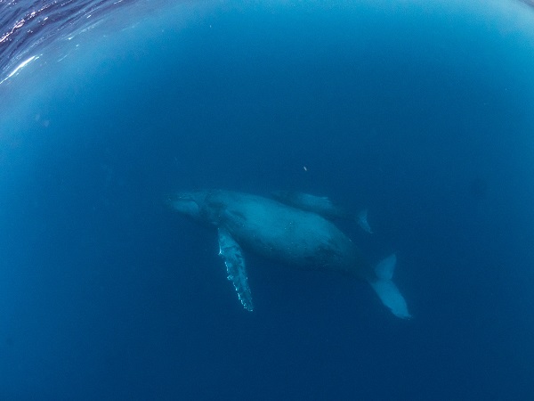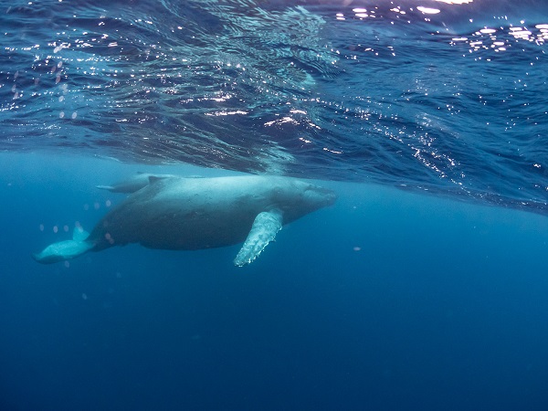 クジラの観察は水面からのみとし、素潜りは禁止とします。クジラによっては、人が近くを泳ぐことを嫌い、逃げてしまう場合があります。そのため、原則として緊急時やガイドの指示がある場合を除き、クジラの近くでフィンキックなどをして泳ぐことも禁止します。クジラは一度でもそのような行動を取る人間を嫌がってしまうと、その後スイムで近づくことができなくなる場合が多いため、必ずこれらの事項をお守りください。