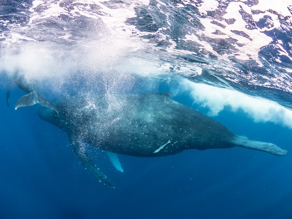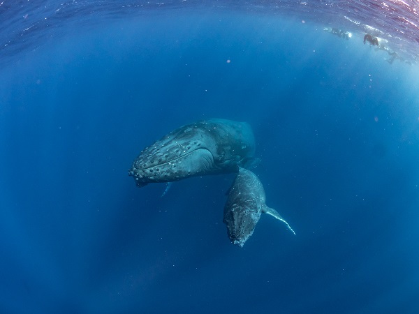 クジラの観察は水面からのみとし、素潜りは禁止とします。クジラによっては、人が近くを泳ぐことを嫌い、逃げてしまう場合があります。そのため、原則として緊急時やガイドの指示がある場合を除き、クジラの近くでフィンキックなどをして泳ぐことも禁止します。クジラは一度でもそのような行動を取る人間を嫌がってしまうと、その後スイムで近づくことができなくなる場合が多いため、必ずこれらの事項をお守りください。