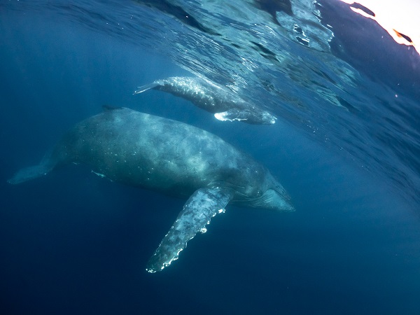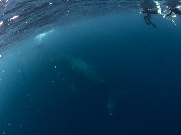 クジラの観察は水面からのみとし、素潜りは禁止とします。クジラによっては、人が近くを泳ぐことを嫌い、逃げてしまう場合があります。そのため、原則として緊急時やガイドの指示がある場合を除き、クジラの近くでフィンキックなどをして泳ぐことも禁止します。クジラは一度でもそのような行動を取る人間を嫌がってしまうと、その後スイムで近づくことができなくなる場合が多いため、必ずこれらの事項をお守りください。