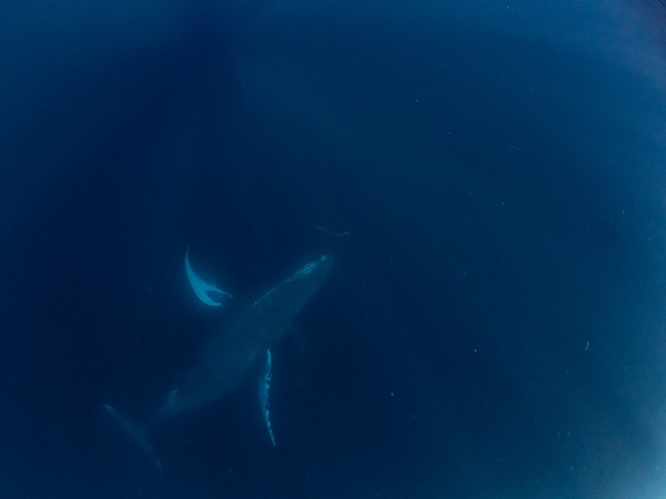 たとえクジラが近くを泳いでいても、状況によってはエントリーを行わない場合があります。