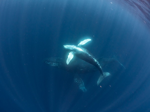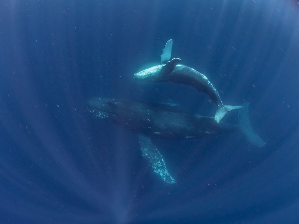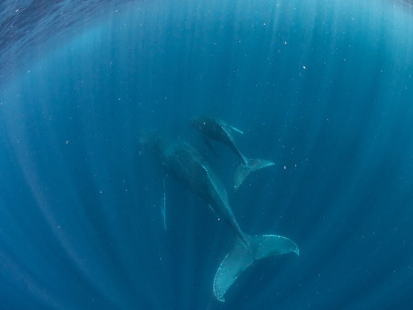 クジラの観察は水面からのみとし、素潜りは禁止とします。クジラによっては、人が近くを泳ぐことを嫌い、逃げてしまう場合があります。そのため、原則として緊急時やガイドの指示がある場合を除き、クジラの近くでフィンキックなどをして泳ぐことも禁止します。クジラは一度でもそのような行動を取る人間を嫌がってしまうと、その後スイムで近づくことができなくなる場合が多いため、必ずこれらの事項をお守りください。