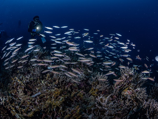 クジラの観察は水面からのみとし、素潜りは禁止とします。クジラによっては、人が近くを泳ぐことを嫌い、逃げてしまう場合があります。そのため、原則として緊急時やガイドの指示がある場合を除き、クジラの近くでフィンキックなどをして泳ぐことも禁止します。クジラは一度でもそのような行動を取る人間を嫌がってしまうと、その後スイムで近づくことができなくなる場合が多いため、必ずこれらの事項をお守りください。