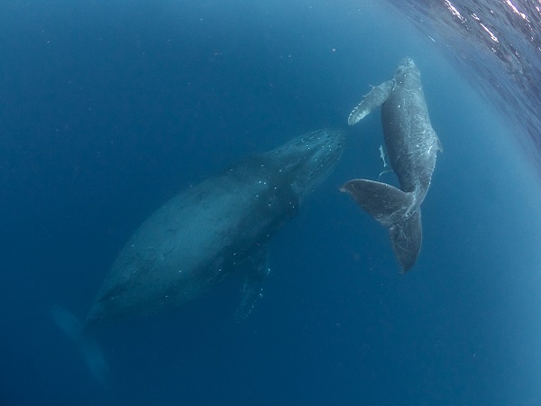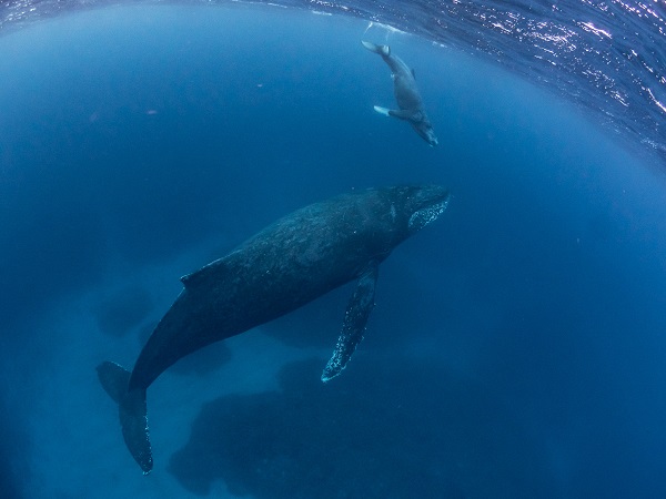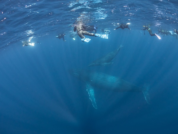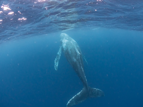クジラの観察は水面からのみとし、素潜りは禁止とします。クジラによっては、人が近くを泳ぐことを嫌い、逃げてしまう場合があります。そのため、原則として緊急時やガイドの指示がある場合を除き、クジラの近くでフィンキックなどをして泳ぐことも禁止します。クジラは一度でもそのような行動を取る人間を嫌がってしまうと、その後スイムで近づくことができなくなる場合が多いため、必ずこれらの事項をお守りください。