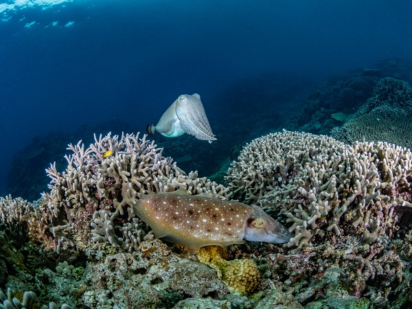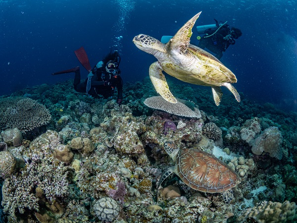 普段から潜るダイバーが少ないので、浅瀬はキレイなサンゴがたくさん群生し、魚影も濃く透明度も抜群です!!