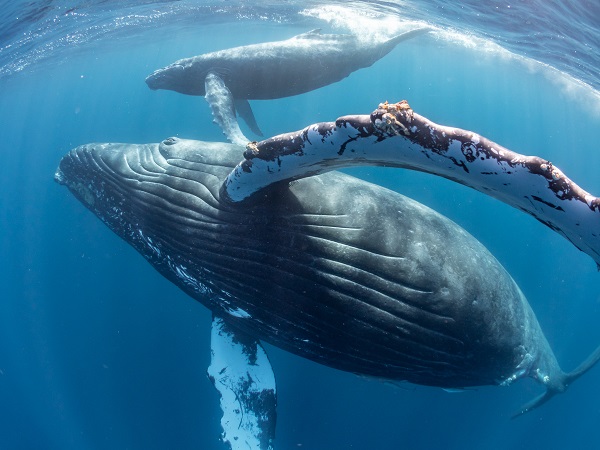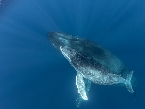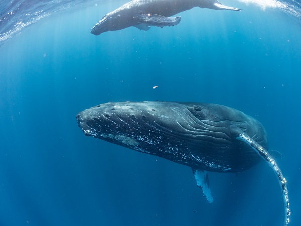 クジラの観察は水面からのみとし、素潜りは禁止とします。クジラによっては、人が近くを泳ぐことを嫌い、逃げてしまう場合があります。そのため、原則として緊急時やガイドの指示がある場合を除き、クジラの近くでフィンキックなどをして泳ぐことも禁止します。クジラは一度でもそのような行動を取る人間を嫌がってしまうと、その後スイムで近づくことができなくなる場合が多いため、必ずこれらの事項をお守りください。