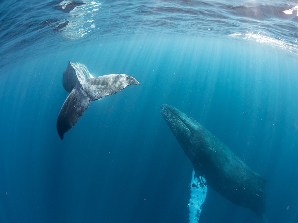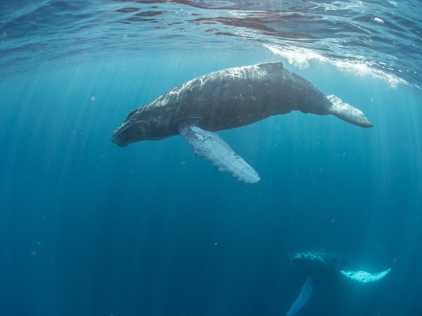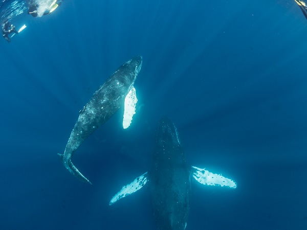 クジラの観察は水面からのみとし、素潜りは禁止とします。クジラによっては、人が近くを泳ぐことを嫌い、逃げてしまう場合があります。そのため、原則として緊急時やガイドの指示がある場合を除き、クジラの近くでフィンキックなどをして泳ぐことも禁止します。クジラは一度でもそのような行動を取る人間を嫌がってしまうと、その後スイムで近づくことができなくなる場合が多いため、必ずこれらの事項をお守りください。