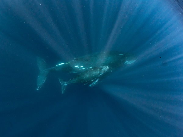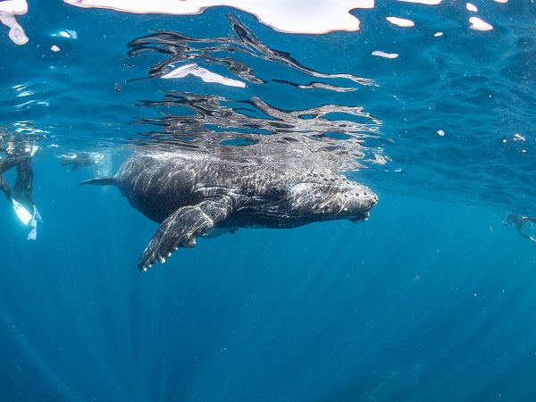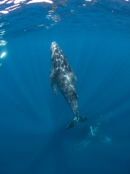 クジラの観察は水面からのみとし、素潜りは禁止とします。クジラによっては、人が近くを泳ぐことを嫌い、逃げてしまう場合があります。そのため、原則として緊急時やガイドの指示がある場合を除き、クジラの近くでフィンキックなどをして泳ぐことも禁止します。クジラは一度でもそのような行動を取る人間を嫌がってしまうと、その後スイムで近づくことができなくなる場合が多いため、必ずこれらの事項をお守りください。